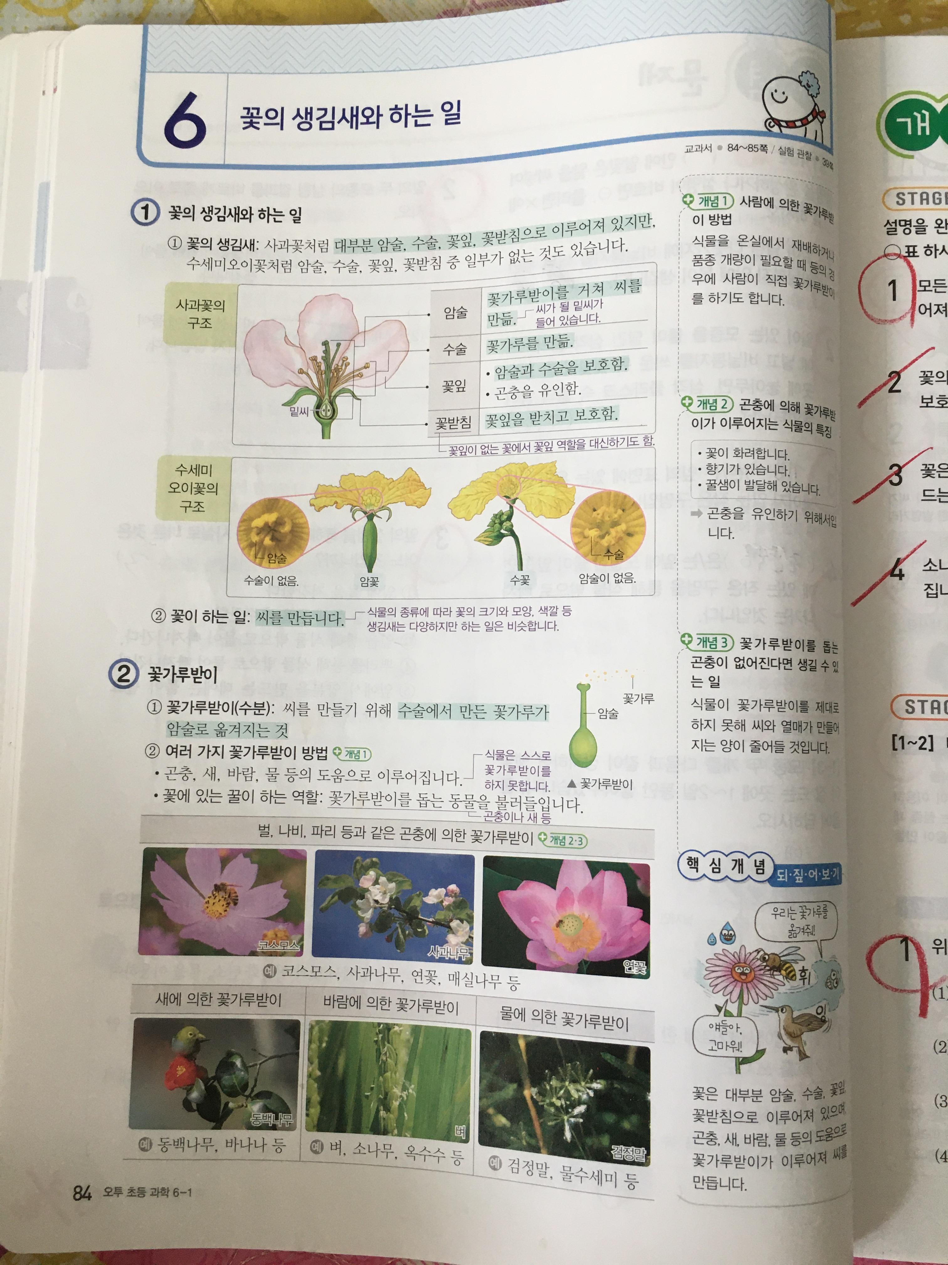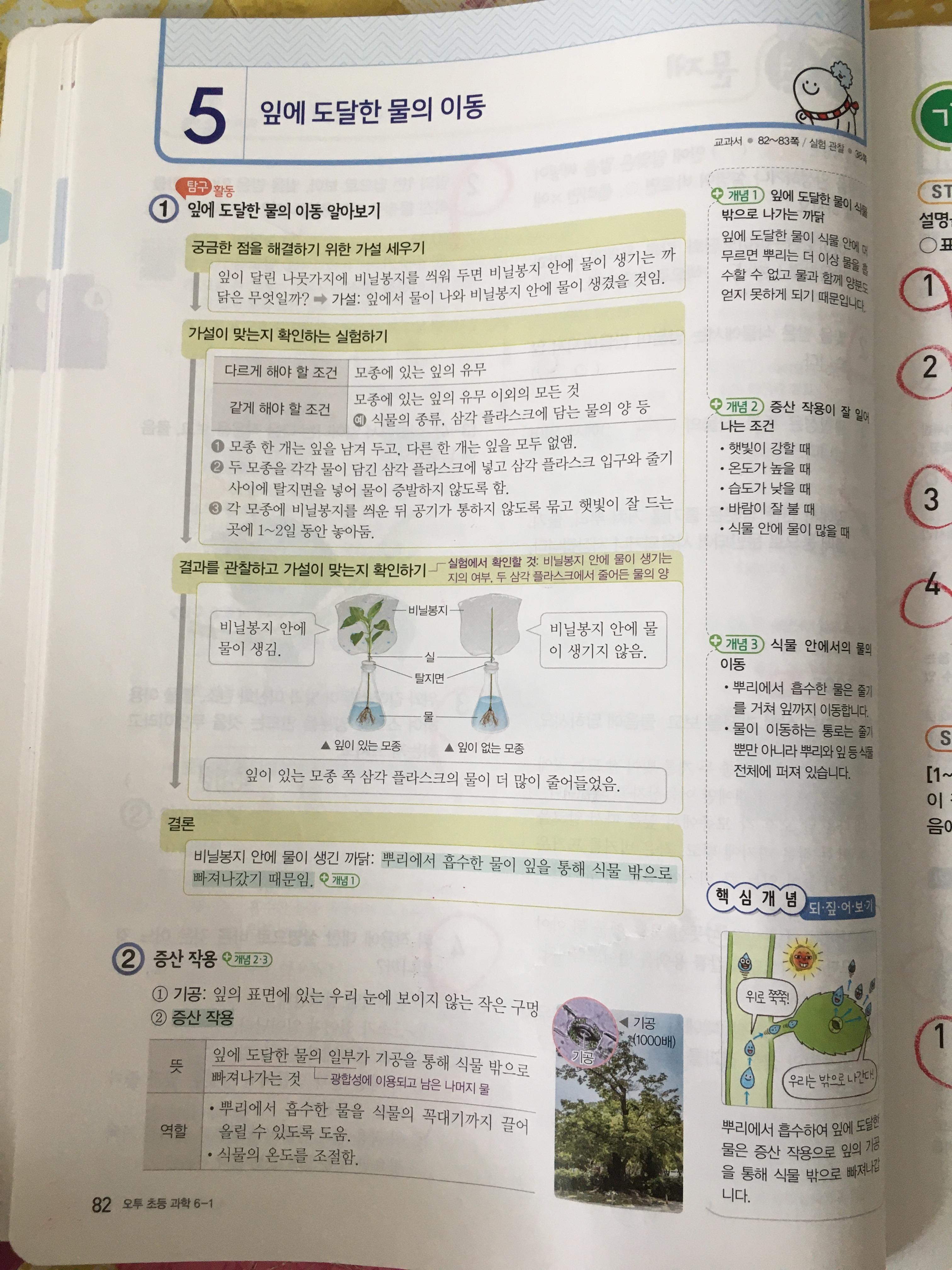 이 단원에서는 뿌리, 줄기, 잎, 꽃, 열매의 생김새와 하는 일을 잘 알아보고, 그 중에서도 "광합성", "증산작용"을 잘 익혀두시기 바랍니다.